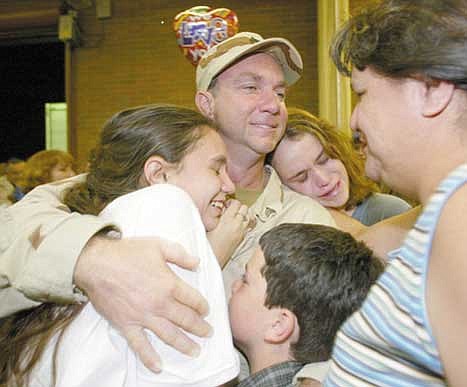Bradshaw's homecoming was sweet but incomplete. His wife, Cheryl, is an active-duty soldier who was deployed to South Korea in May. So as he held close his three children, ages 12 to 20, he also talked via cellphone to his wife on the other side of the Pacific.