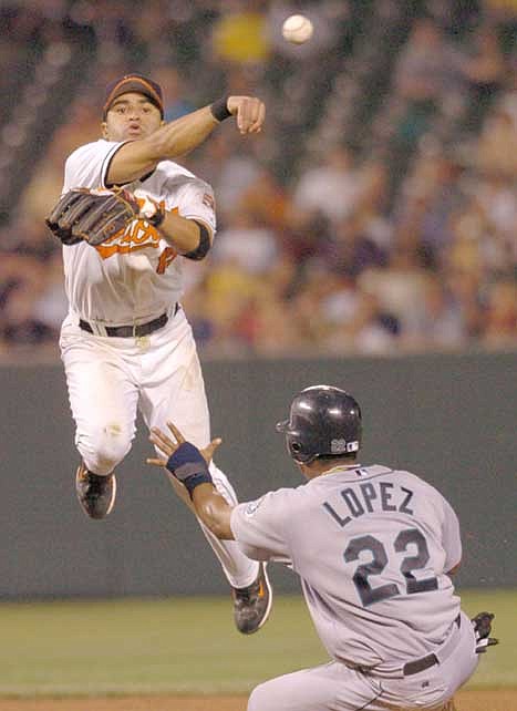 Mora homered in the first inning of the second game, but Seattle tied it in the second inning when Justin Leone homered off Dave Borkowski and Willie Bloomquist hit an RBI single.