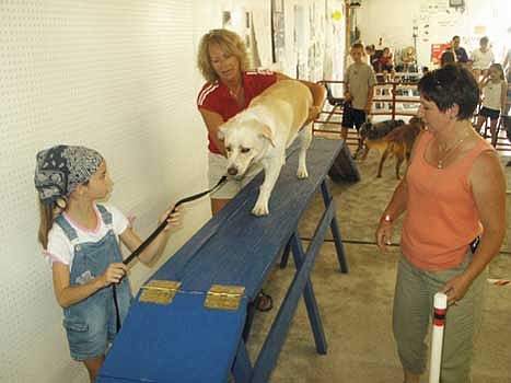 "We are doing this obstacle course with dogs," explained Kenton Dow, aged nine. Dow was running the course with his golden retriever, Lacey.