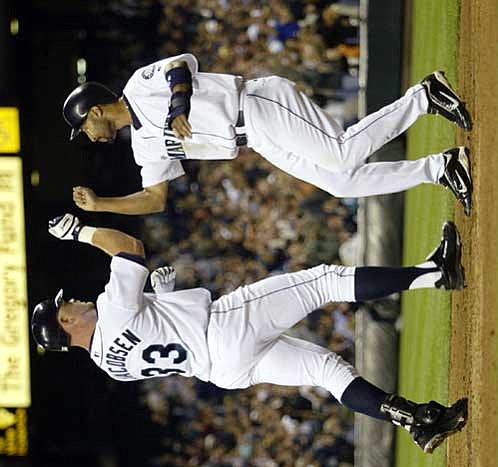 In the sixth, Bucky Jacobsen put the Mariners ahead 5-4 with a three-run homer to cap a five-run inning. Randy Winn singled in the first run and Edgar Martinez added a sacrifice fly before Jacobsen's 421-foot shot to left.
