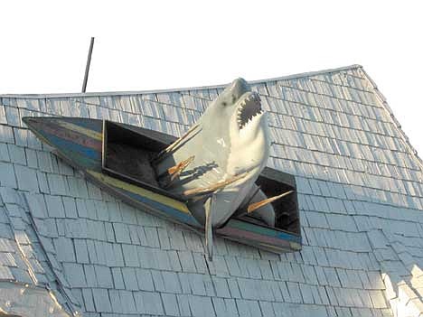 In fact, the building still sports its trademark shark bursting out of the front wall, tribute to the Mighty Quinn's Caribbean theme. However, the passage of time has brought new, unwanted art, as graffiti adorns its back wall.
