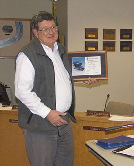 PUD staff and fellow commissioners paid tribute to Conley Monday, and presented him with a certificate of appreciation for his years of service to the utility. It was the last commission meeting of the year, and the last for Conley. He was defeated in his bid for reelection in November. Greg Hansen will be sworn in as the PUD commission's newest member Jan. 3.