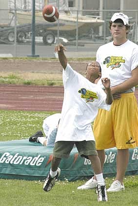 Youth went through football drills, from feet work to passing and receiving, blocking, tackling and pass coverage.