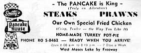 Where "the pancake is king," but they also offered steaks and prawns. Smitty's was located in "west Moses Lake by the freeway." What is located in the same spot today? The ad appeared in a cookbook published by the Moses Lake Woman's Club. We will feature recipes and ads from the book in future weeks. The cookbook is courtesy of Bill Ecret.