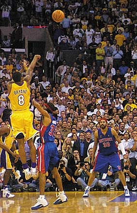 Shaquille O'Neal added six of his 29 points in overtime against the demoralized Pistons, who were 45 seconds away from a shocking two-game series lead. Instead, Bryant's shot over Richard Hamilton provided the shock, and Detroit stumbled to the lowest-scoring overtime in NBA Finals history, managing just two points on 1-for-9 shooting.