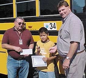 Last week, Luis was rewarded for his good deed: John Eschenbacher, Moses Lake School District transportation manager, and Mr. Gierke presented Luis with a Good Citizen's Award. Eschenbacher also presented Luis with a special bus key chain that lights up and is given only to students who earn the Transportation Citizen's Award. In addition, he received a $10 gift certificate to McDonald's.
