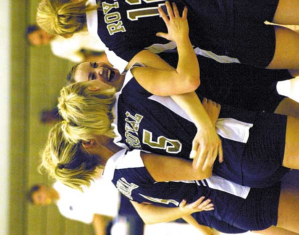 Trailing 20-13, Royal awoke from its slumber to whittle away at the Coyotes to close the gap to 24-23 before Ashley Baker to the ball into the net to end an 8-2 run and give the Coyotes its second game at 25-23.