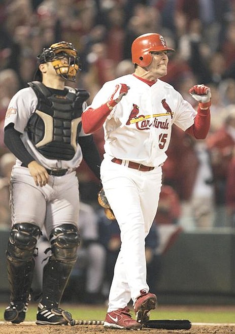 ST. LOUIS (AP) — When he misses with his big uppercut, Jim Edmonds can look utterly lost at the plate, as if he's swinging at shadows. After striking out his previous two at-bats, the St. Louis star struck back.