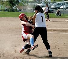 MOSES LAKE — Michelle Wheeler was supposed to shutdown West Valley in the final two innings. But trouble met the freshman pitcher in the top of the seventh and after a talk from head coach Rudy Ochoa to trust in her defense, Rachel Mohs came through with a dig on a Lindsay Jones' single to center field to throw out Kristina Doty at the plate to preserve the win at 4-1 at Othello High School Thursday.