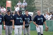 They did not finish there. Still in the third inning, catcher Brad Tracy stepped to the plate with one runner on base and belted a home-run for the Dogs sixth and seventh runs of the inning and game.