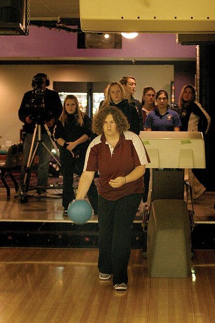 Susan Krcma, who began the day bowling with the junior varsity team before being moved back into a varsity slot, came up to the line at bowled a strike.