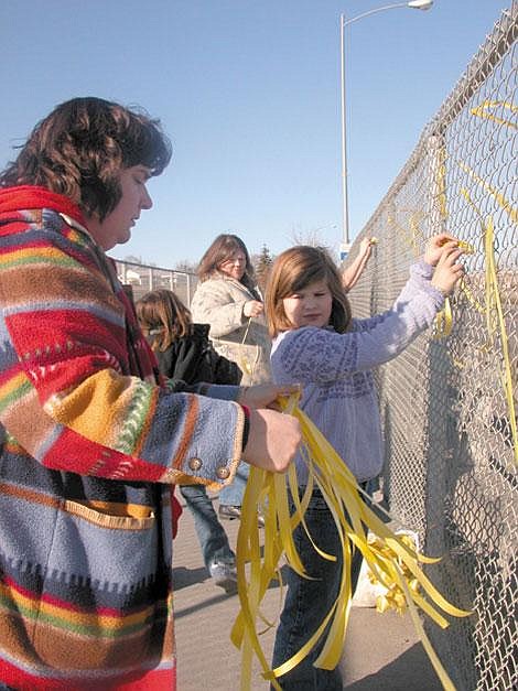Tuesday, in between honking cars that showed their support, Girl Scouts and their moms hung yellow ribbons on the bridge in Moses Lake along Stratford Road.
