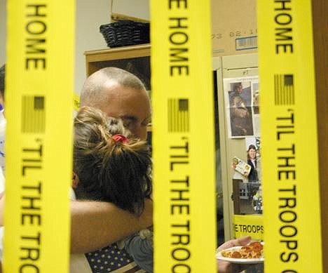 MOSES LAKE — After a year in Iraq serving with the National Guard 1-161st, James Porter returned to his family Tuesday. His second family, his co-workers at the Moses Lake Clinic, had to wait a little longer.