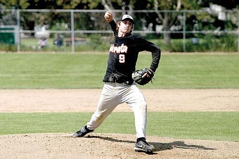 Mike Ratigan took the mound for Ephrata in the first game in a pitcher's duel with Omak's Adam Long. Ratigan started by retiring the first two batters, then hit Ben Carter and gave up a single to Brad Jerstegen before retiring the next batter to end the inning.