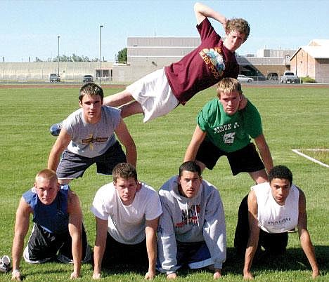 CUTLINE: Moses Lake track regional qualifiers (top to bottom; left to right) Jake Smedley, Kraig Grant, Rhoan Ashby, Brandan Anderson, Tyan Carpenter, David Moore and Aaron Wafer will compete in regionals this weekend. There are three pole vaulters, a sprinter, a 4x100 team and a javelin thrower traveling to take on the best the region has to offer.