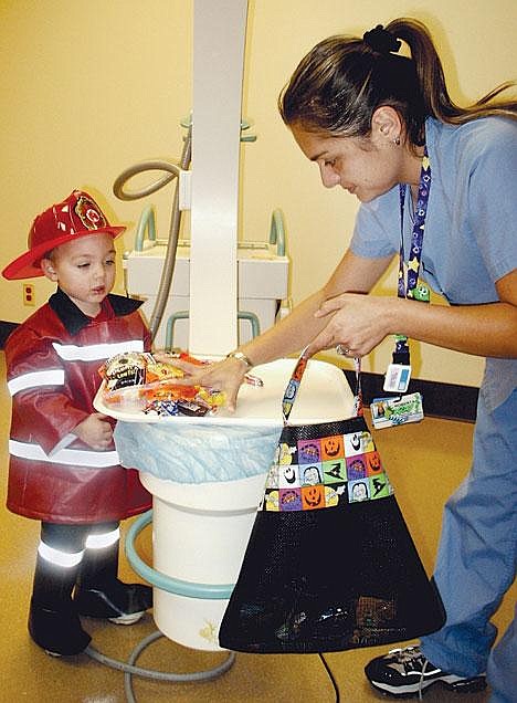 Burns, an X-ray technologist at Samaritan Healthcare, was one of the radiology staff members on duty Monday evening to check candy out for safety purposes.