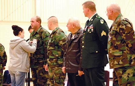 Listening to members of the Washington Army National Guard and retired servicemen share their stories at Wednesday's Veterans Day assembly at Columbia Basin Secondary School, Morrison thinks of his brother Dustin Davis, who recently returned from serving in Iraq.