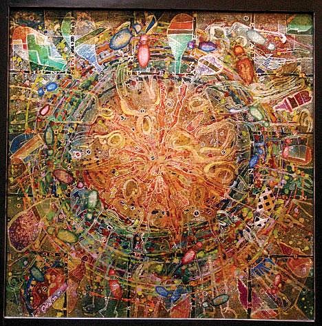 The paintings are a mixture of materials painted onto glass or lexar, which creates various layers of paint on a single object. The story of Oleksa's paintings is one that begins far from Soap Lake.