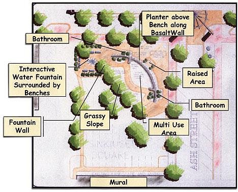 The council voted earlier this summer to generally endorse the Sinkiuse plan, but a few tweaks to that plan have since been made. The biggest change to the square plan, Municipal Services Director Gary Harer told the council, has been the movement of bathrooms away from a proposed stage and closer to the Moses Lake Post Office.