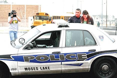 On Thursday, students recorded a mock arrest scene in the high school parking lot for a movie about substance abuse. Co-producers and juniors Marie Quade and Kileen Palmerton wrote the script. The crew hopes to finish before Christmas and plans to air the movie on channel 3.