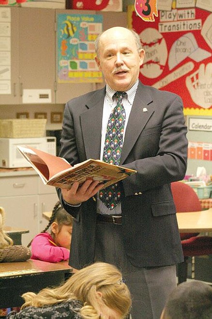 Mike Gregoire is visiting an elementary school in every county throughout the state during the 2006-2007 school year to promote reading. His visit to a Moses Lake school was delayed due to the two-hour late start time.