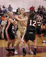 Marielle McKean scored the first points for Moses Lake on a drive to the hole and drew the foul. She made it 2-0 but could not complete the three point play.