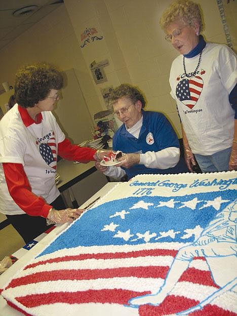 George held its annual Presidents Day celebration Monday in a packed George Community Hall, complete with a large cake bearing the frosting likeness of George Washington.