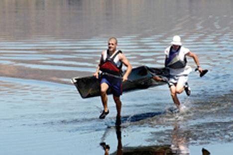 Teams canoed through several lakes starting at Park Lake, carrying canoes as they ran over dry land on their way to the finish line in Soap Lake.