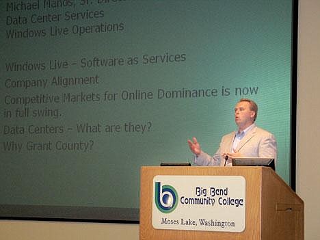 "Isn't it interesting that the number one place that we found, the very first significant investment on a global scale, is Grant County?" Michael Manos, senior director of data center services for Microsoft's Windows Live Operations, asked a full audience during his presentation at the county's economic development council quarterly membership meeting Thursday afternoon.