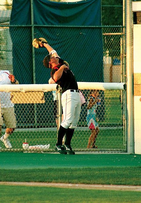 With a runner on at second, Boo Christensen fielded a deep fly ball to left and fired a throw in to third that held the Spokane base runner. On the next play, a sharp grounder to short was bobbled, but Brent Munster recovered and was able to throw home in time to get the Spokane runner at the plate for the final out of the inning.