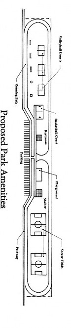 The Longview Tracts property is long and thin, approximately 150 feet wide and 1,500 foot long, leading Grigg to draw a draft conceptual plan for the council of what the complete park facility conceivably could hold. Preliminary proposals include a 3,500-foot linear foot running track, two soccer fields, a playground, rest room, volleyball courts, basketball court, and room for 40 parking spots. Grigg said full development of the park would be done as soon as time and budgets allow.
