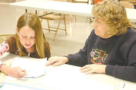 Four times a week children from Lakeview Elementary School meet at United Methodist Church in Moses Lake for Youth-Senior Connection, where seniors help them with school work. After their homework is finished, students make crafts and play games.