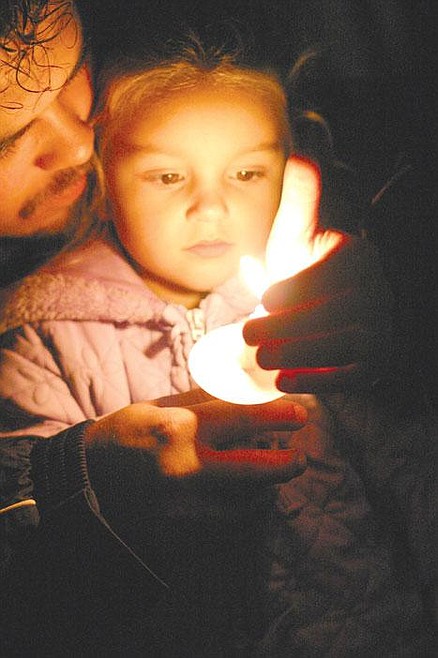 Keelan Vasquez and daughter Shay attended the candle light vigial for Take Back the Night, an event to raise awareness of domestic violence at McCosh Park Friday night.