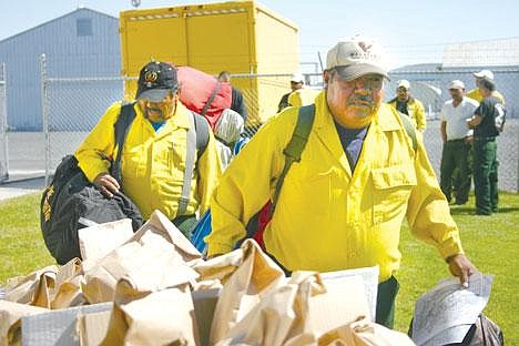 A total of five crews landed at Grant County International airport in the afternoon. Crew bosses received briefing packets, including an action plan for fighting the fire and maps of the area. Firefighters grabbed their lunches and soon after climbed onto buses.