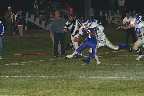 Eagle running back Frank Velasquez took the first-down carry up the middle, fighting off several tackles and stretching the ball over the plane of the goal line for the touchdown. Soap Lake's second touchdown in just 1:09 of game time put them up 13-0.