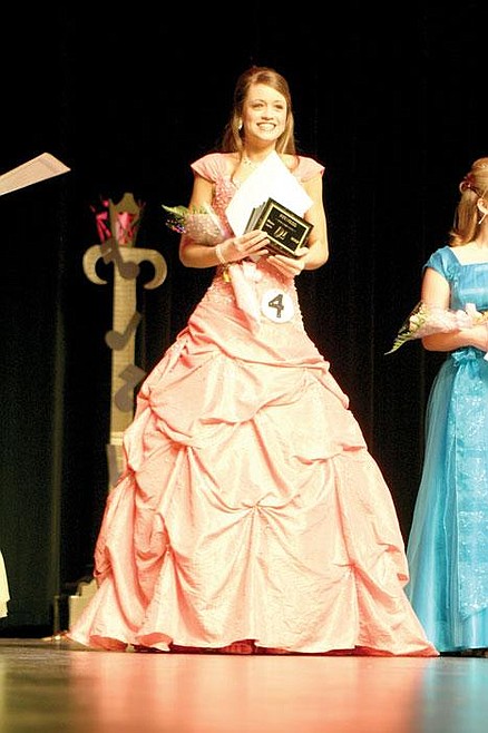 Sarah Sherman was titled as First Runner-Up. For the talent portion she sang "Think of Me" from "Phantom of the Opera." She is a member of the Moses Lake High School jazz choir and plans to earn a degree in music.