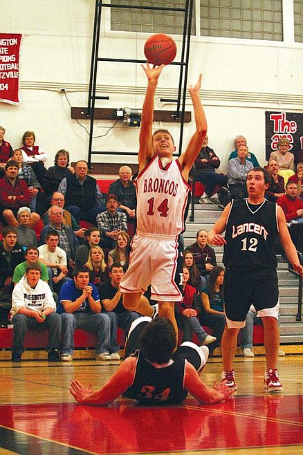 The first two possessions for the Broncos were point-scoring opportunities for Myles Borth, who scored the first hoop for Lind-Ritzville with a layup and the second with a jump shot from the top of the key. He would end the night with 15 points for the Broncos.