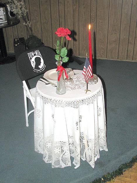 EPHRATA — A lone table, with white tablecloth, single rose, red ribbon, slice of lemon, salt, empty wine glass, empty chair and an American flag, went unused.