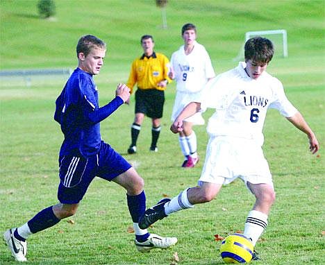 Riverside Christian controlled possession for the first 20 minutes, keeping the ball at the Lions' end of the field and nearly scoring on a few occasions. But Moses Lake Christian weathered the storm, then dented the scoreboard at the 31-minute mark when Jonathan Roberts rebounded Kameron Firouzi's initial shot and beat the keeper from 18 yards out.