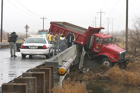 The Grant County Sheriff's Office and Grant County Fire District No. 5 responded to the scene. Fluids leaked from the truck into the water below the bridge. One lane of travel was blocked. The cause of the wreck is being investigated.