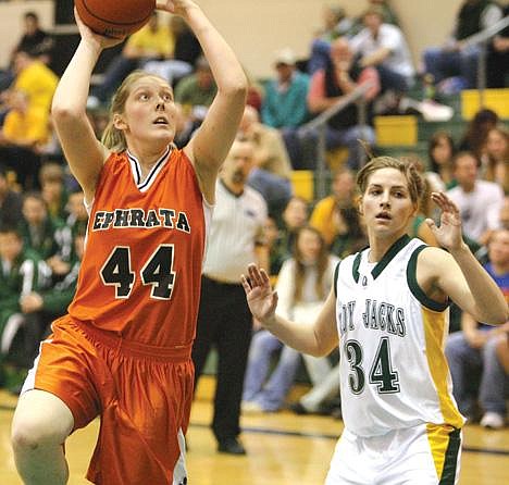 Ephrata (1-16, 1-14) managed to hang around because of the inside-outside threats of senior BreAnne Duff and freshman Abby Smith. Duff nailed 4 of 11 from 3-point range en route to 14 points, while Smith abused the Lady Jacks' interior defenders at times and added 12 points. Duff added eight rebounds, while Smith had five boards and two steals.