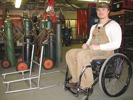 Schlehuber joined the Big Bend Community College welding program in fall 2004, but he put his education on hold after a car accident took away the ability to use his legs. He started his education again at Big Bend last winter and has embraced a new purpose of helping other paraplegics.