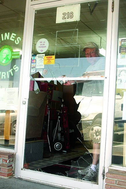 When he arrived, he saw broken liquor bottles in the street, broken glass and disrupted liquor bottles inside the store.