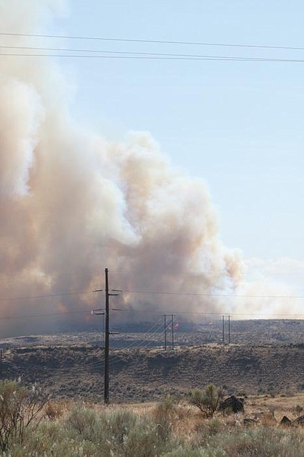 The fire was reported at 12:55 p.m. By Sunday night it was moving amongst rugged terrain burning sage brush and cheat grass in a recreation area south of the O'Sullivan Dam near the Mar Don Resort, according to Grant County Undersheriff John Turley, acting as a public information officer for firefighting efforts.