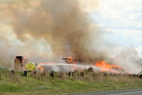 The wreck apparently triggered a fire destroying about 100 tons of hay, said Roger Hansen, chief of Grant County Fire District No. 5.