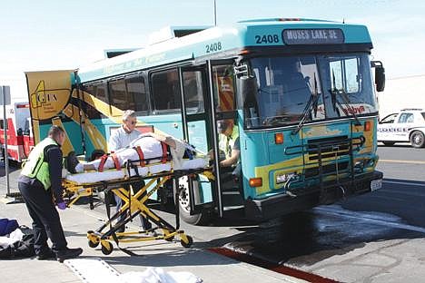 Moses Lake Fire Department paramedics placed neck braces on those who appeared injured and they were removed from the bus on stretchers.