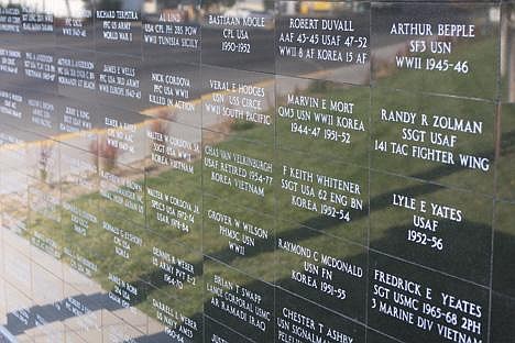 One side of one wall in Veterans Memorial Park is complete with 121 plaques bearing the names of people who served various agencies in the U.S. military from the Coast Guard to the Army to the Air Force.