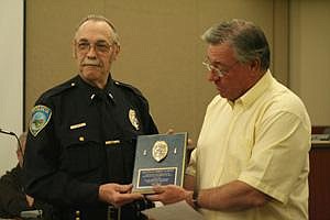 During the retirement party, there was a table showcasing many awards he earned throughout his career. He was Officer of the Year in 2006, but Bob said he most cared for an award given to him by the Paul Revere Masonic Lodge honoring him for his service to the city.