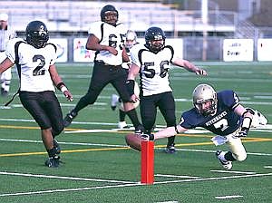 Columbia Basin’s first score came when Josh Kast took a hand off and ran toward the home sideline before diving into the end zone for a 7-0 Riverhawks lead.