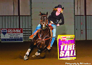 MOSES LAKE — Quincy Gibbs of Hamilton, Mont. was the winner in the featured Never Won A Saddle race during the Washington Barrel Racing Association Speedhorse Shootout in the Ardel Pavilion of the Grant County Fairgrounds April 18 and April 19.